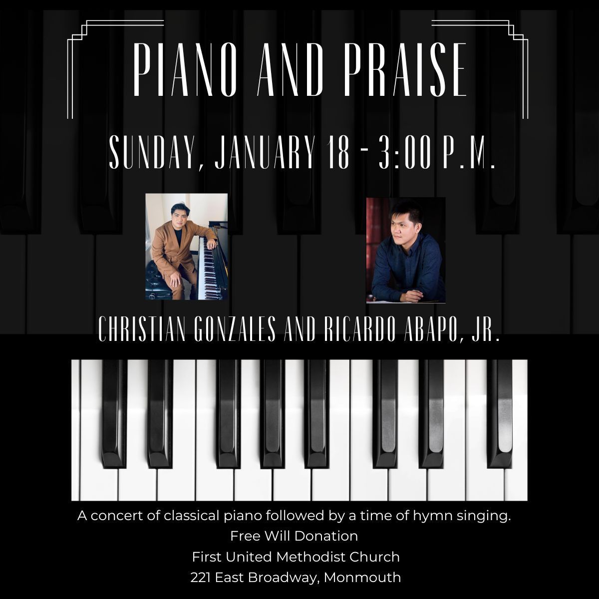 Piano and Praise - Sunday, January 18 at 3:00 p.m.